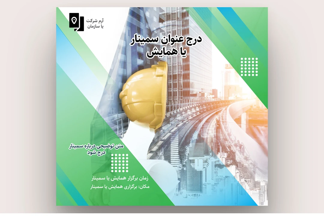 طرح پوستر لایه باز سمینار و همایش امکان تغییر عکس پس زمینه و تغییر رنگ لایه ها و درج متن دلخواه براساس نوع همایش لاکچری متن فونت ساحل.