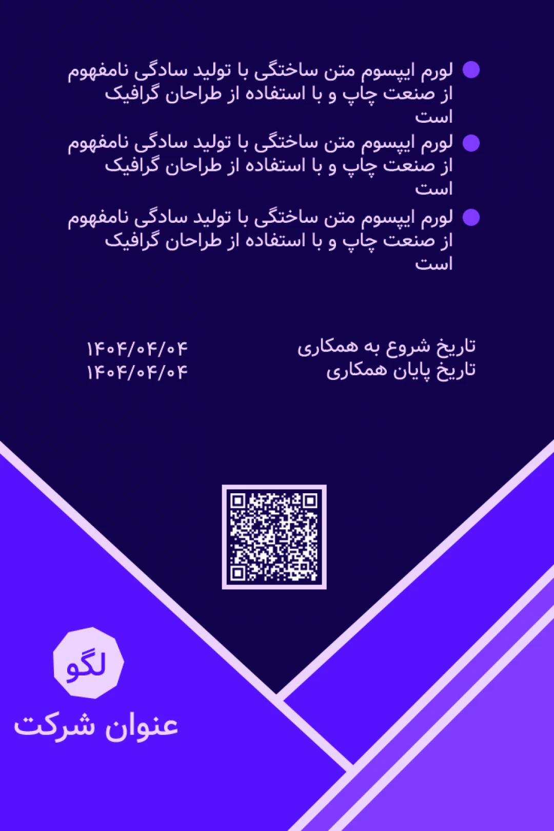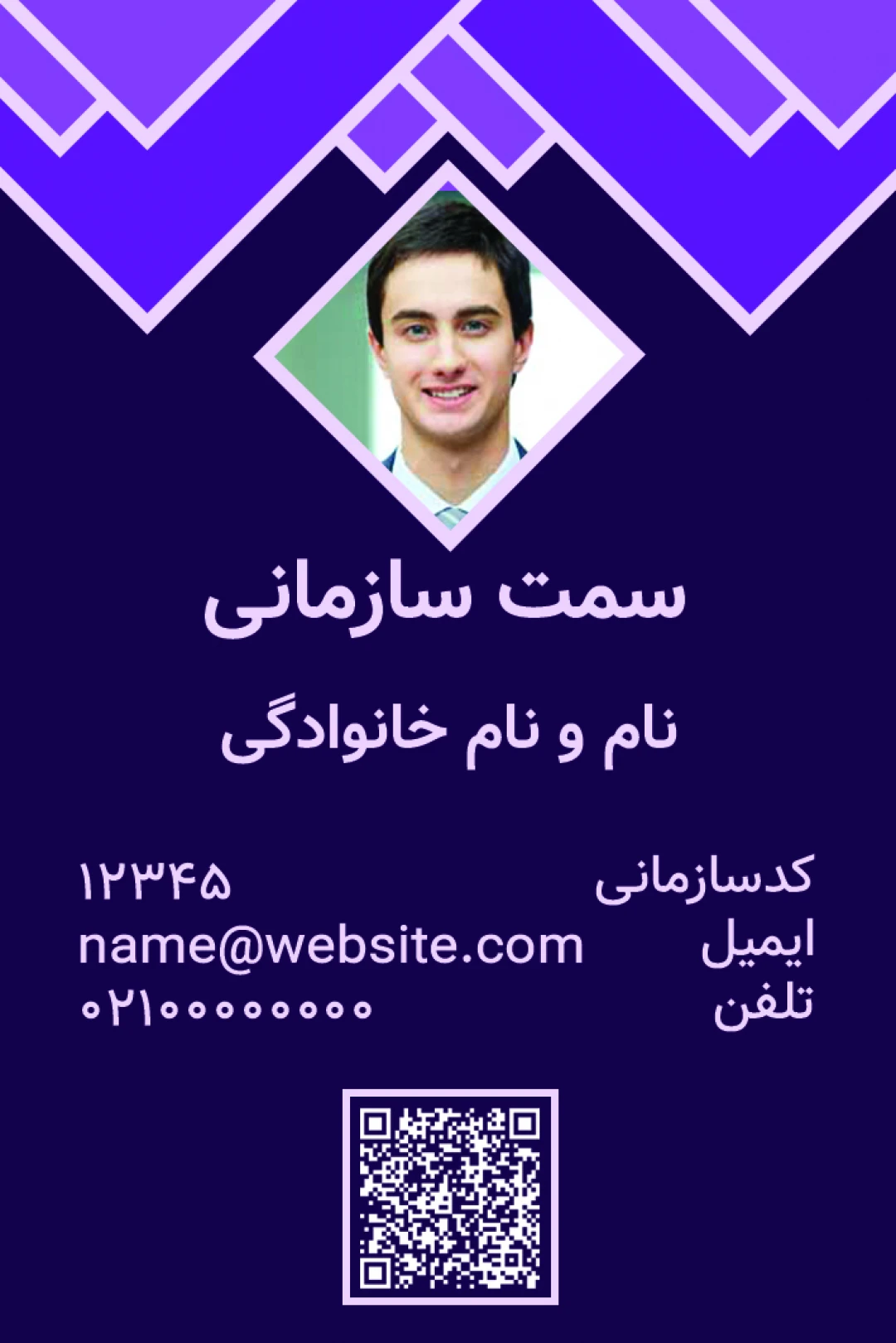 حاوی اطلاعات کلیدی از جمله: نام و نام خانوادگی، سمت سازمانی، کد سازمانی، اطلاعات تماس، شرح وظایف، QR code جهت دسترسی سریع به اطلاعات دیجیتالی پرسنل و....
