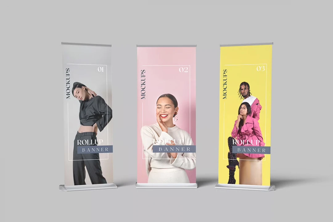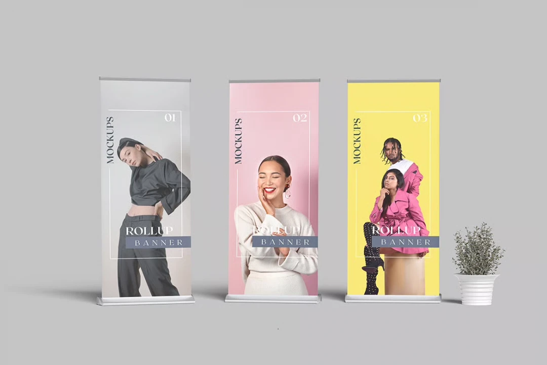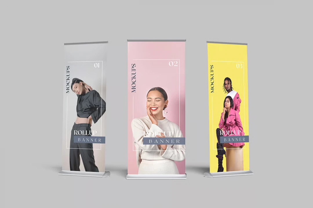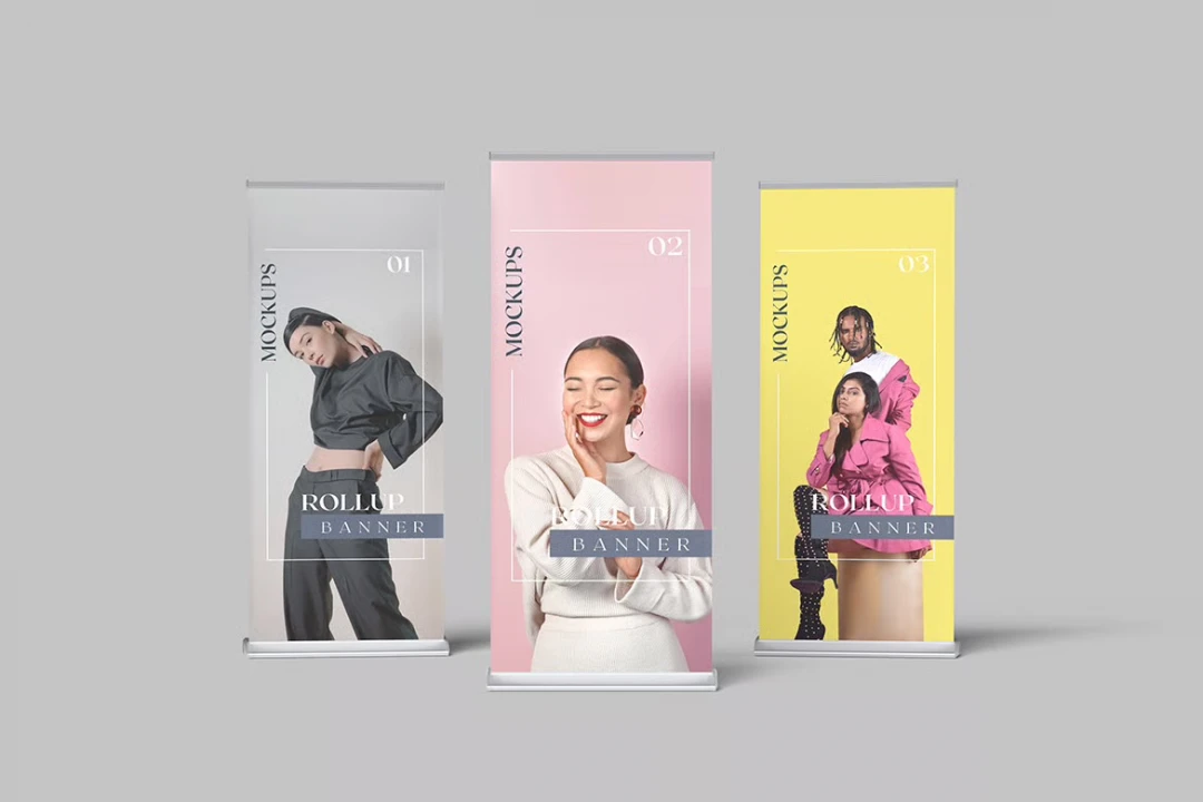 دانلود موکاپ لایه باز استند ایستاده سه تایی