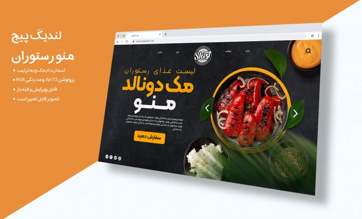 لندینگ پیج منوی رستوران و آشپزی با فرمت فتوشاپ