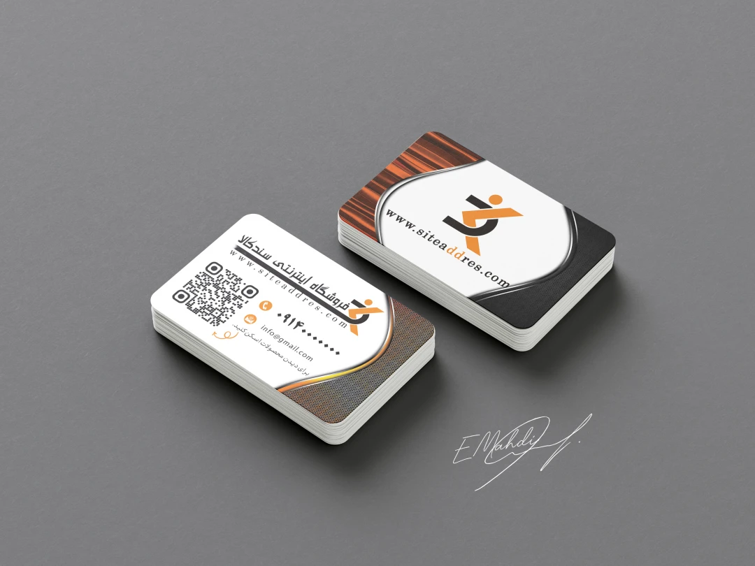 فایل PSD کارت ویزیت فروشگاه اینترنتی یک طرح حرفهای، مدرن و کاملاً لایهباز است که با رعایت اصول طراحی گرافیک و چاپ آماده شده. این کارت ویزیت با رنگبندی جذاب (سفید، مشکی و نارنجی) و استفاده از QR Code، امکان دسترسی سریع مشتریان به سایت و شبکههای اجتماعی فروشگاه را فراهم میکند.