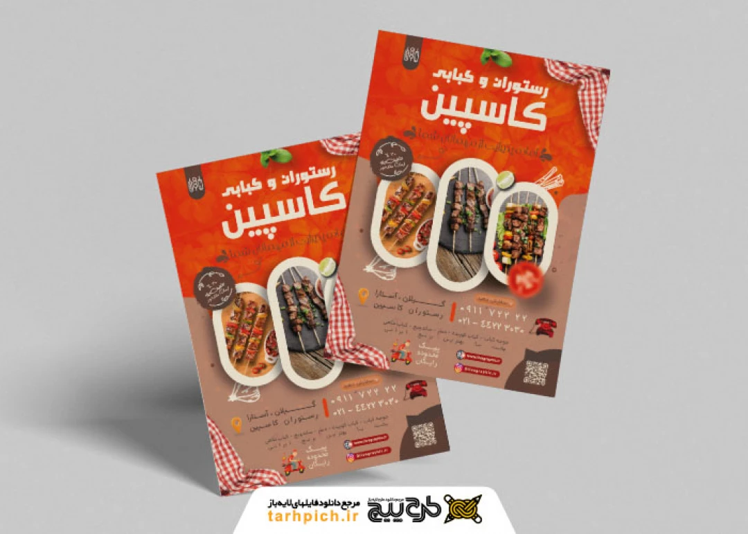 فایل PSD لایهباز و قابل ویرایش تراکت تبلیغاتی رستوران و کبابی با فرمت فتوشاپ