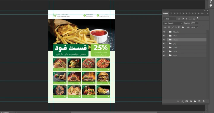 پوستر پریمیوم لایه باز تخفیف فست فود و رستوران psd