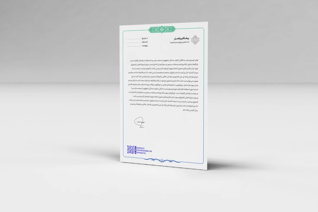 اگر به دنبال یک قالب آماده، زیبا و کاملاً حرفهای برای نوشتن نامهها، گزارشها و مکاتبات سازمانی هستید، فایل لایهباز سربرگ اداری «Pishgam Pixel» دقیقاً همان چیزیست که نیاز دارید.