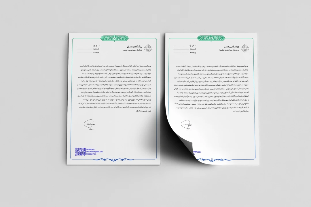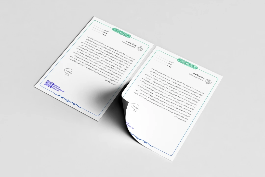 با این سربرگ، هر نامهای که ارسال میکنید، نمایانگر نظم، اعتبار و هویت برند شما خواهد بود. طراحی آن به گونهایست که هم در نسخه چاپی و هم دیجیتال جلوهای رسمی و شیک دارد.