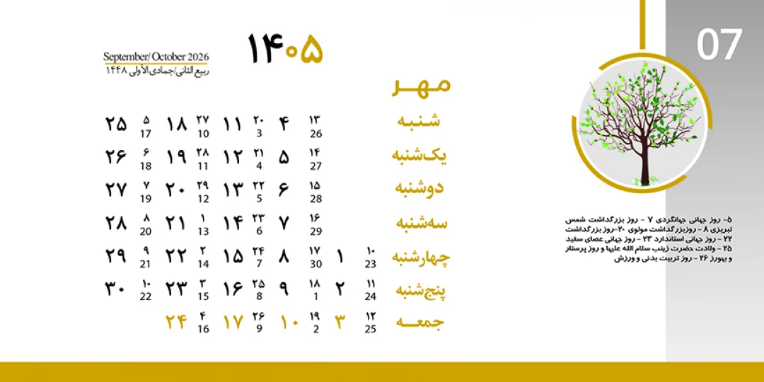 تقویم مناسبتی مهر 1404 + فایلهای لایه باز مناسبتها