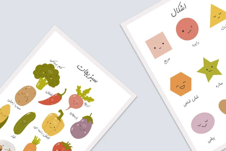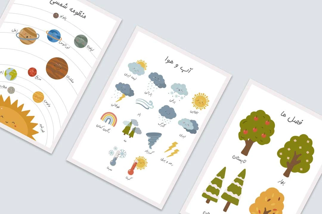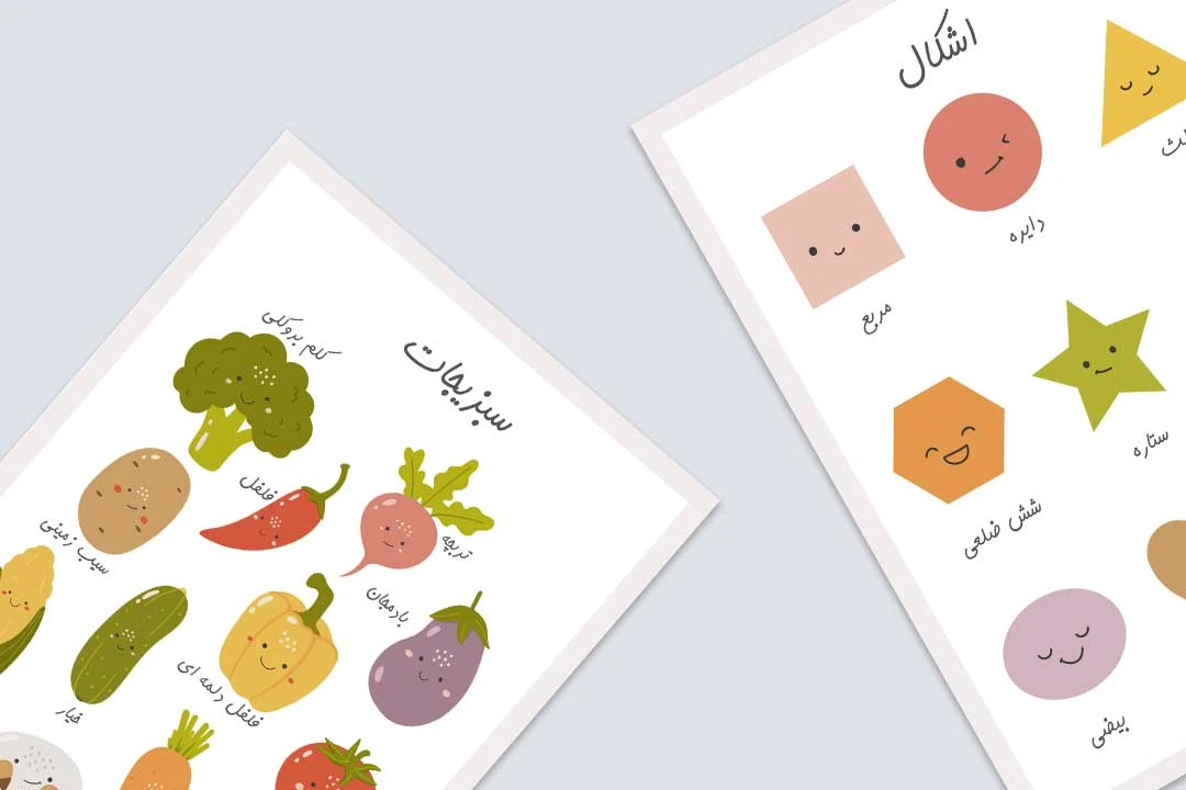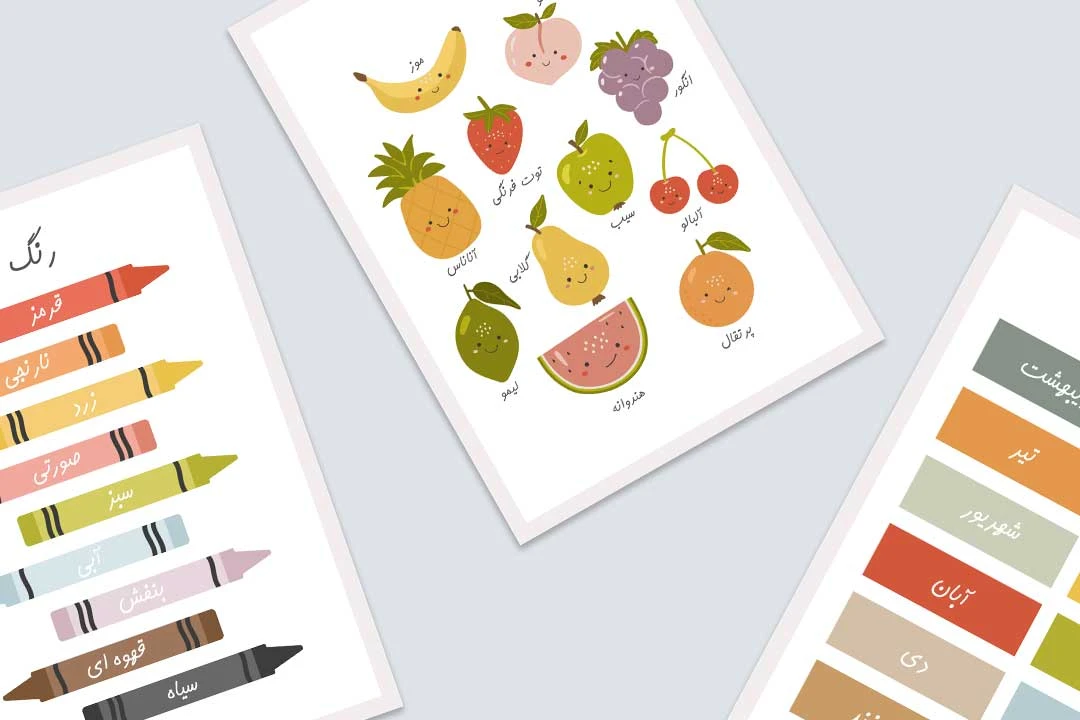 11 پوستر آموزشی کودکان به فارسی |حروف،اعداد،رنگها، میوهها، احساسات و غیره