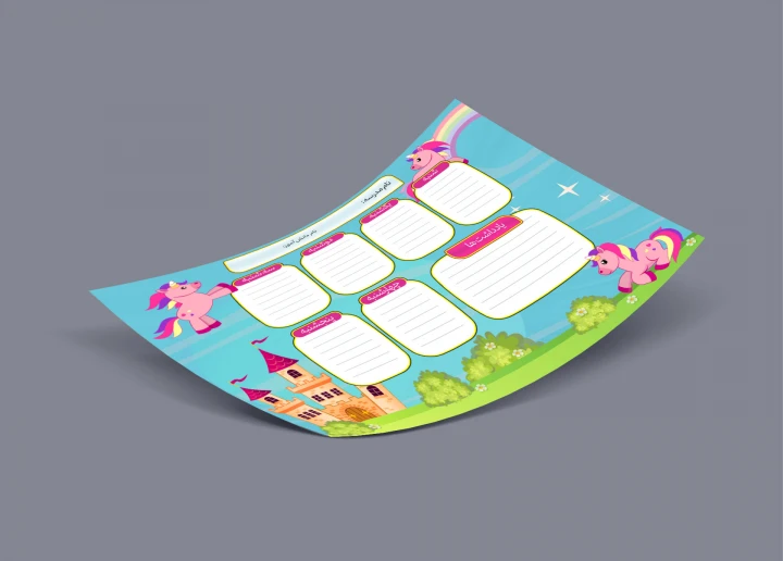 طرح جذاب اسب تک شاخ برای برنامه هفتگی مدرسه یا پیش دبستانی (PSD)