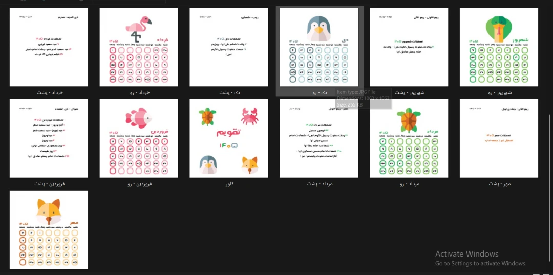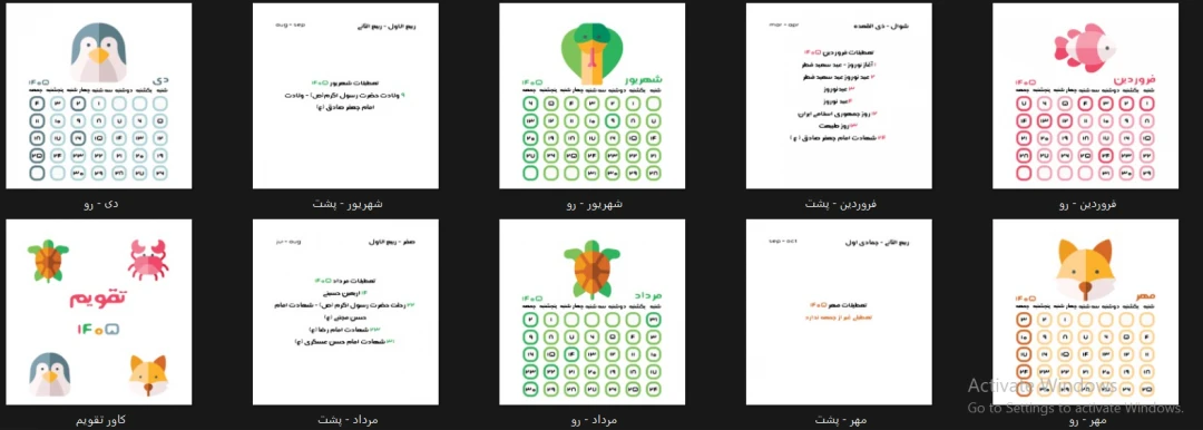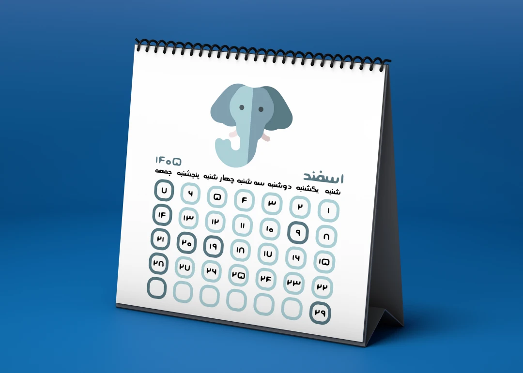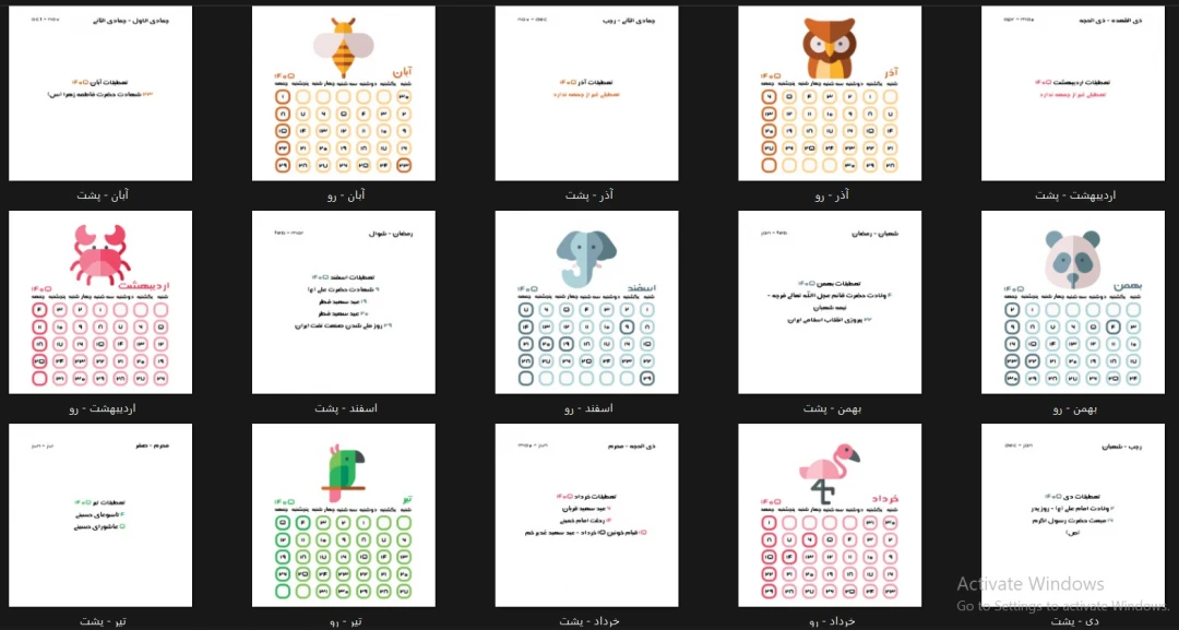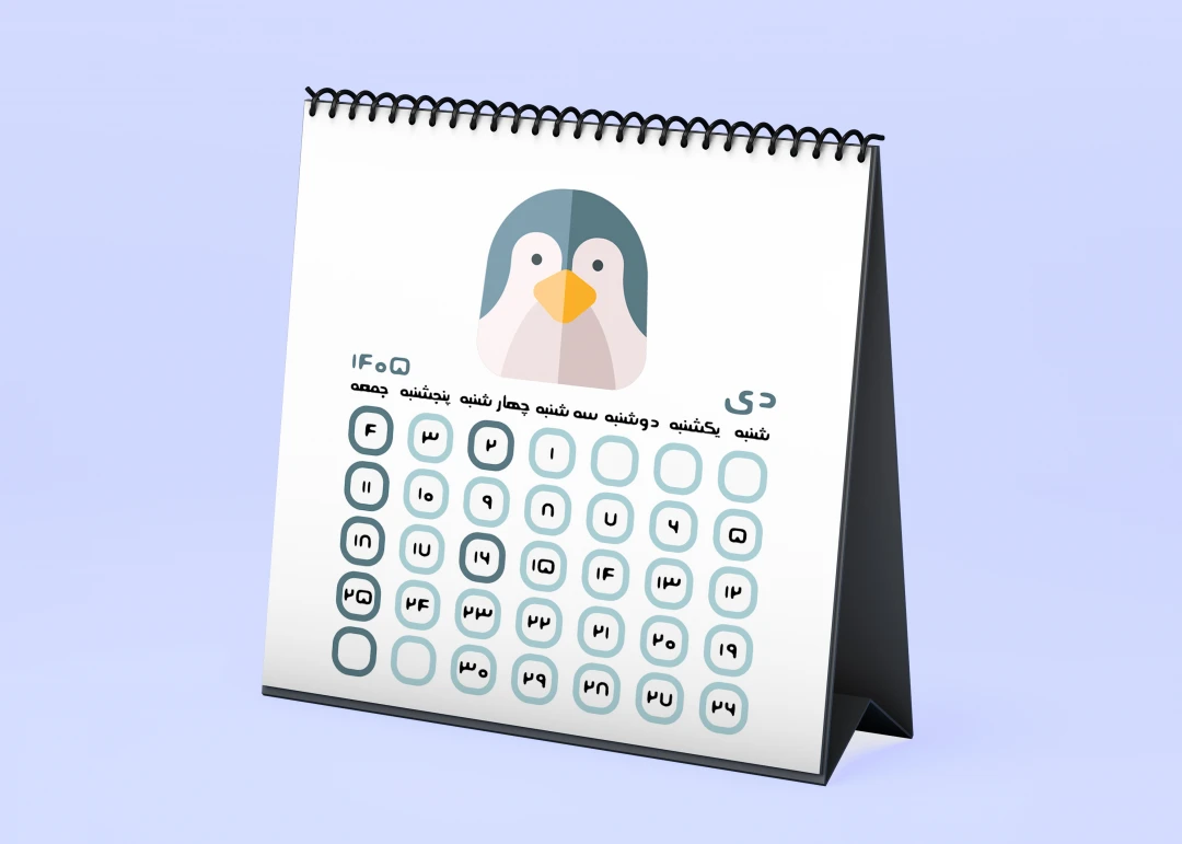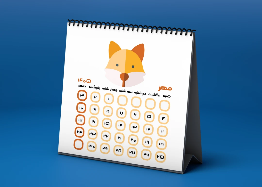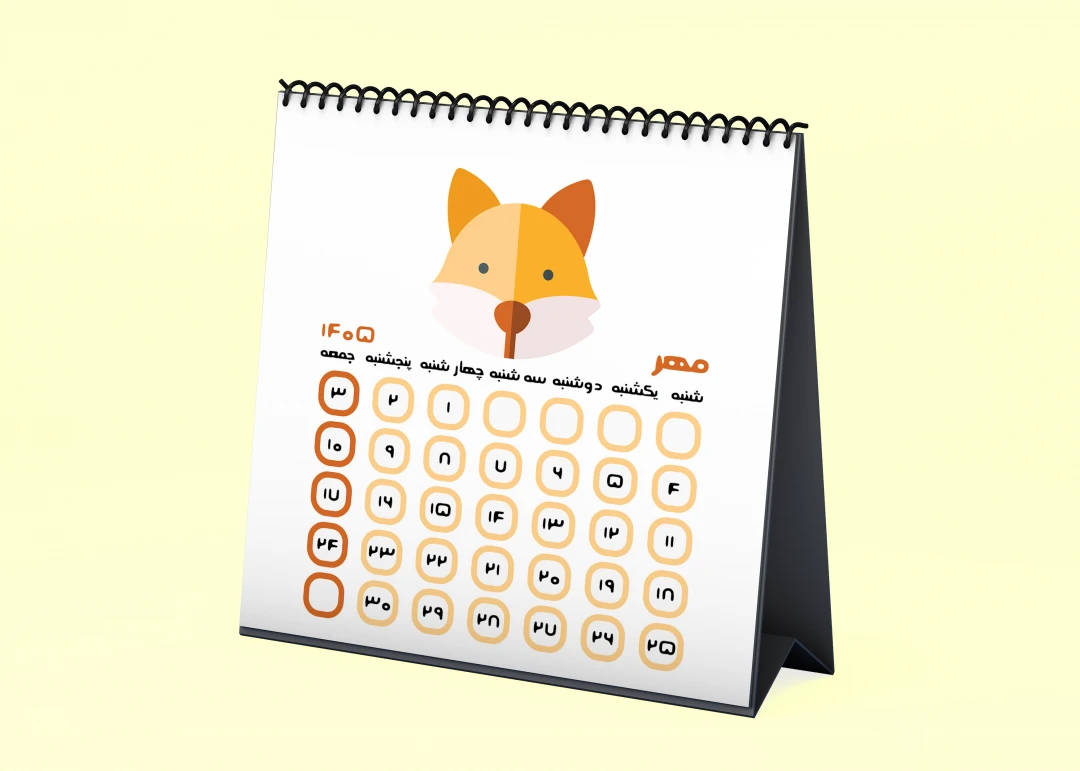 یک فایل فتوشاپی لایه باز psd شامل یک کاور تقویم ، ۱۲ ماه سال و ۱۲ عناوین تعطیلات در ابعاد ۹ در ۹ سانتی متر