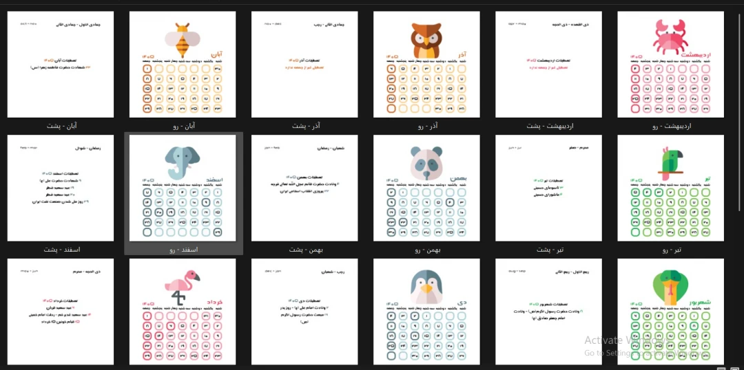 تقویم مربعی ۱۴۰۵ طرح حیوانات کد 9548