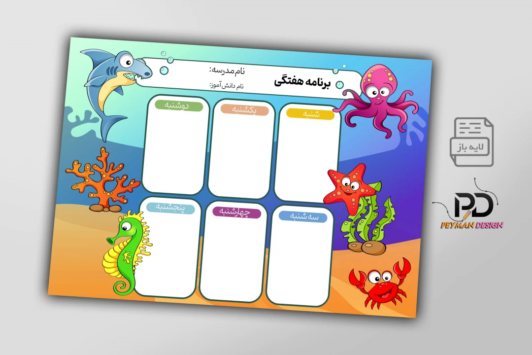 اگر به دنبال یک طرح جذاب، کاربردی و کاملاً قابل ویرایش برای برنامهریزی هفتگی دانشآموزان هستید، این فایل لایهباز دقیقاً همان چیزیست که نیاز دارید!