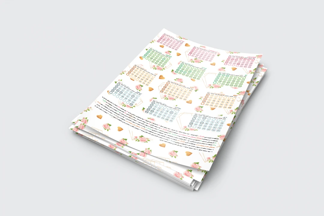 تمامی رنگ ها از نظر اصول طراحی چک شده و مابقی بستگی به چاپخانه و دستگاه چاپ دارد و تایید نهایی با چاپخانه است .