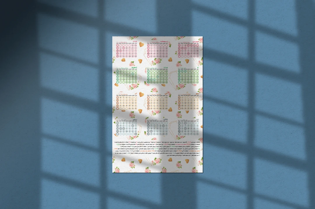 تقویم دیواری ۱۴۰۵ مدل رز کد 8643