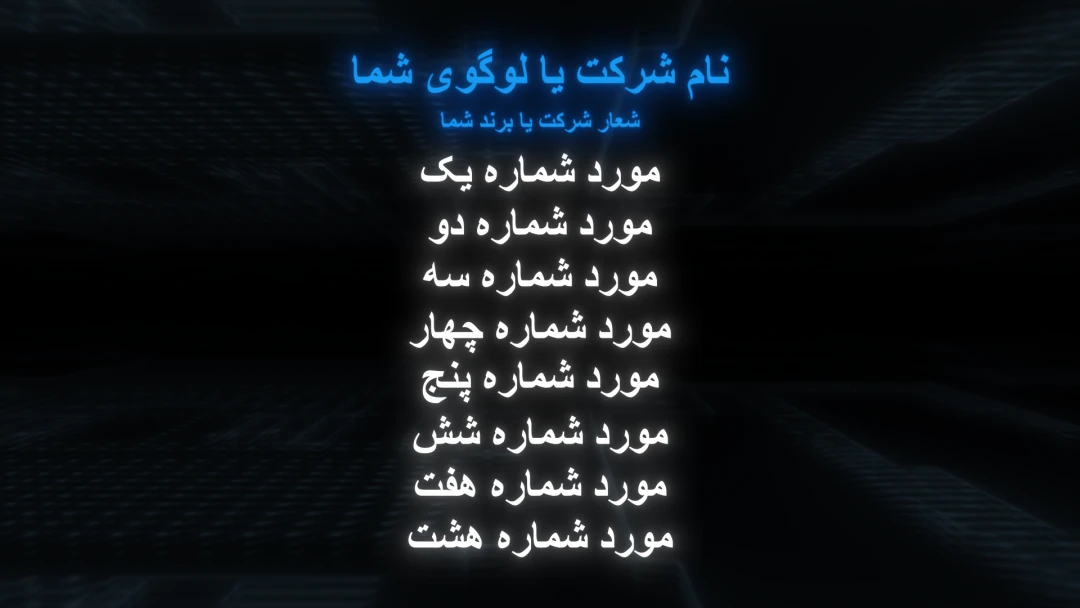 تو این فایل افترافکت ابتدا لوگو با افکت نمایان میشه و سپس موارد، زیرش یکی یکی اضافه میشن