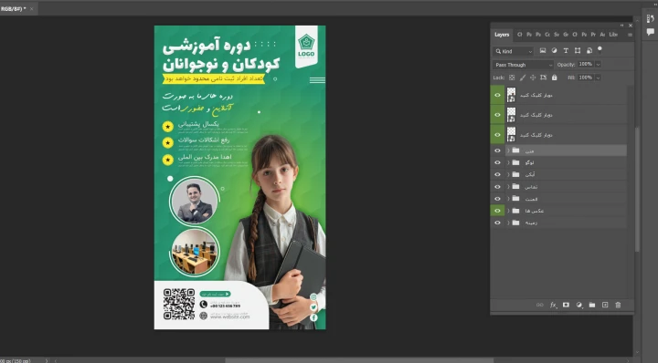 پوستر پریمیوم لایه باز کمپین فروش دوره کودکان و نوجوانان psd