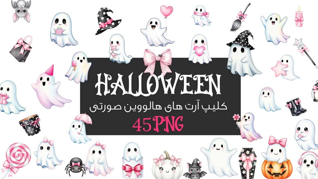 ۴۵ کلیپ آرت (Clip Art) هالووین کیوت صورتی - Cute Pink Halloween PNG با کیفیت ۴K (مناسب چاپ و استیکر)