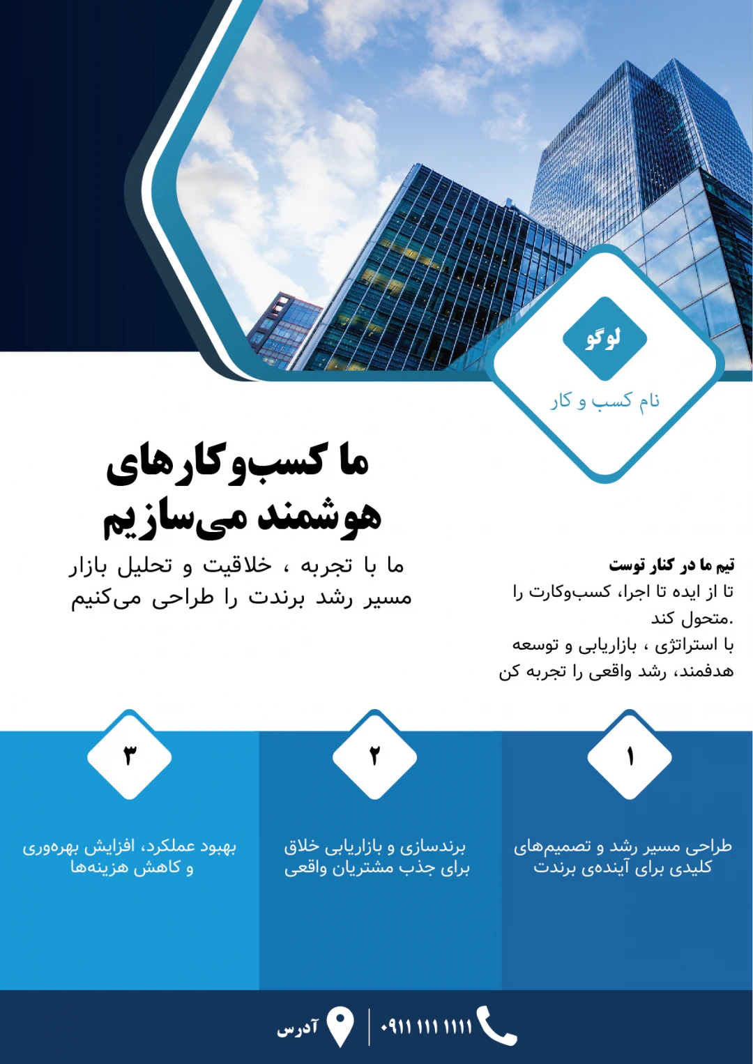 - طرح لایه باز پوستر A4 مناسب برای مشاوره کسب و کار