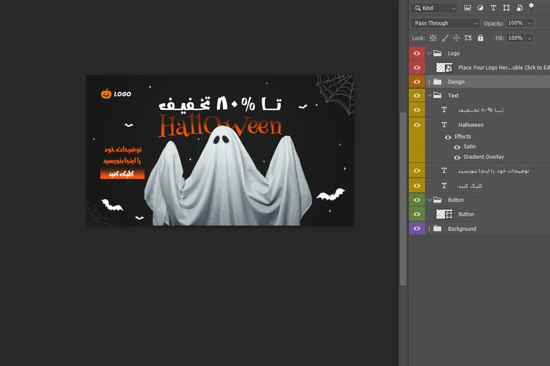 - لایه باز به متن به همراه کلیپ آرت روح هالووین