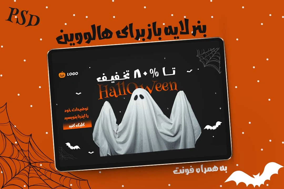 لایه باز بنر هالووین، بنر تخفیف هالووین PSD، بنر فروش ویژه هالووین، طرح تبلیغاتی هالووین، بنر تبلیغاتی فتوشاپ، بنر لایه باز تخفیف، بنر مناسبتی PSD، دانلود بنر هالووین، بنر تبلیغات محصولات، طرح آماده فتوشاپ، فایل لایه باز تبلیغاتی