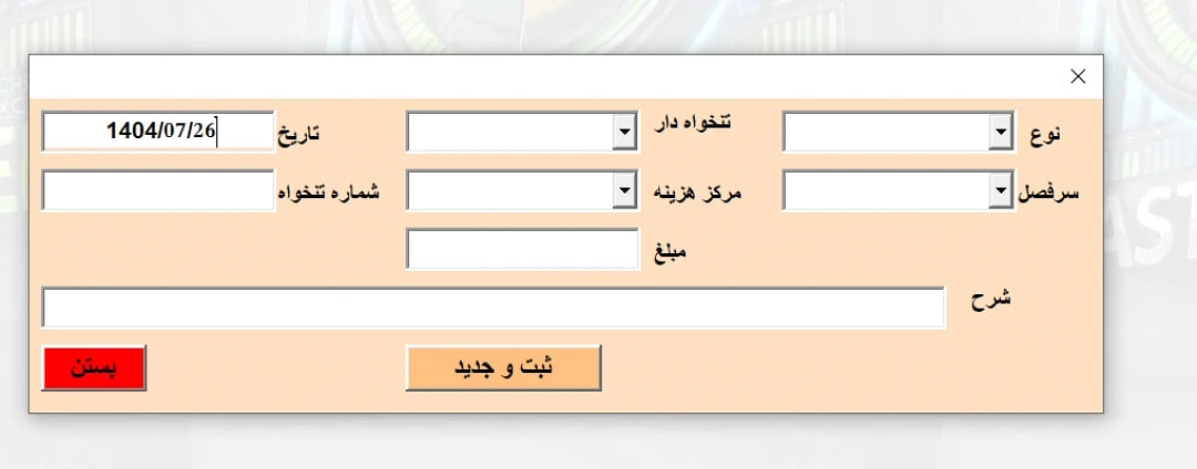 🔹 ثبت سریع اسناد تنخواه از طریق فرم کاربرپسند