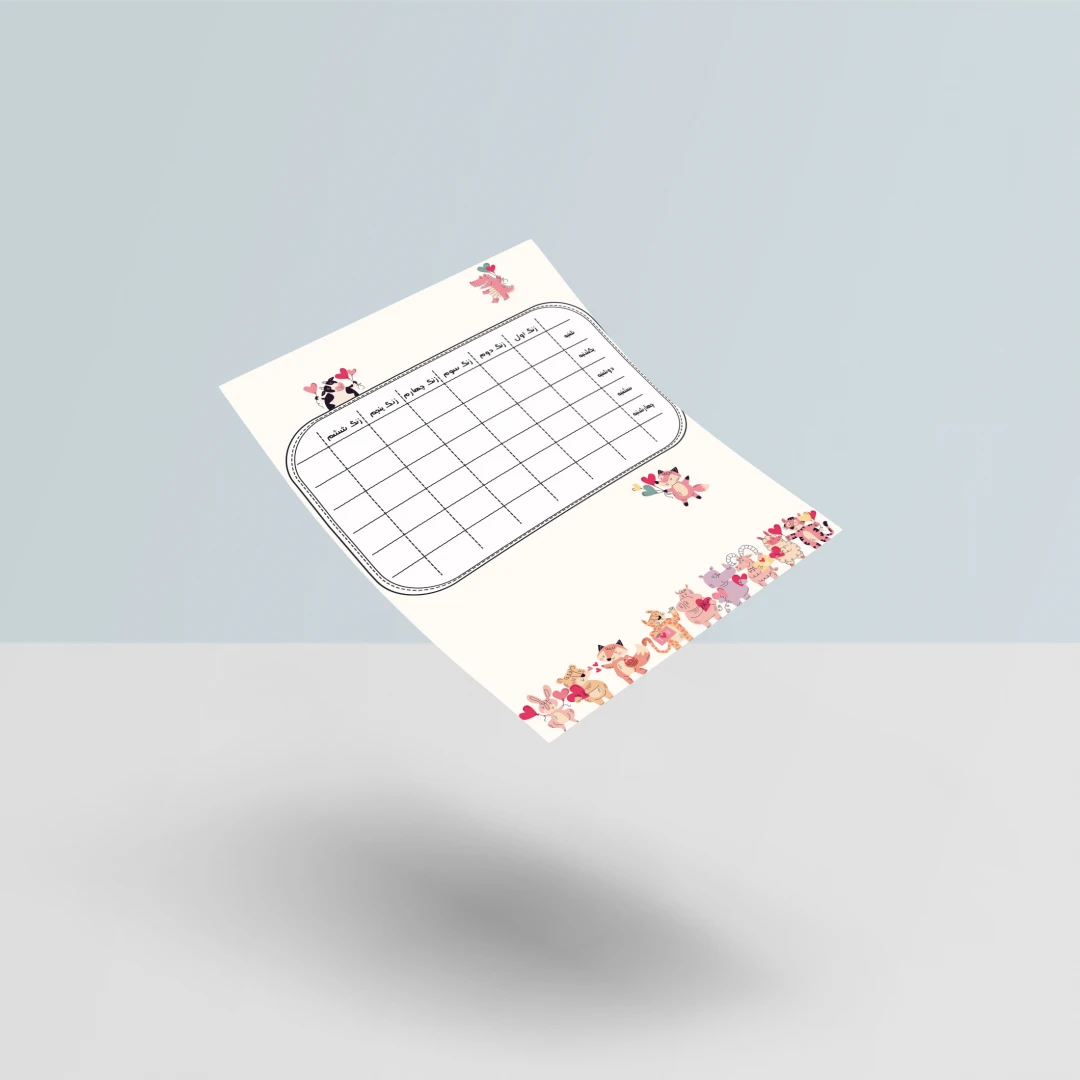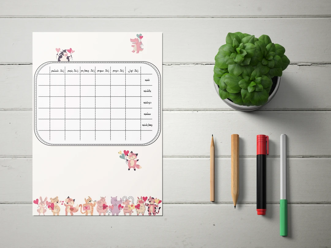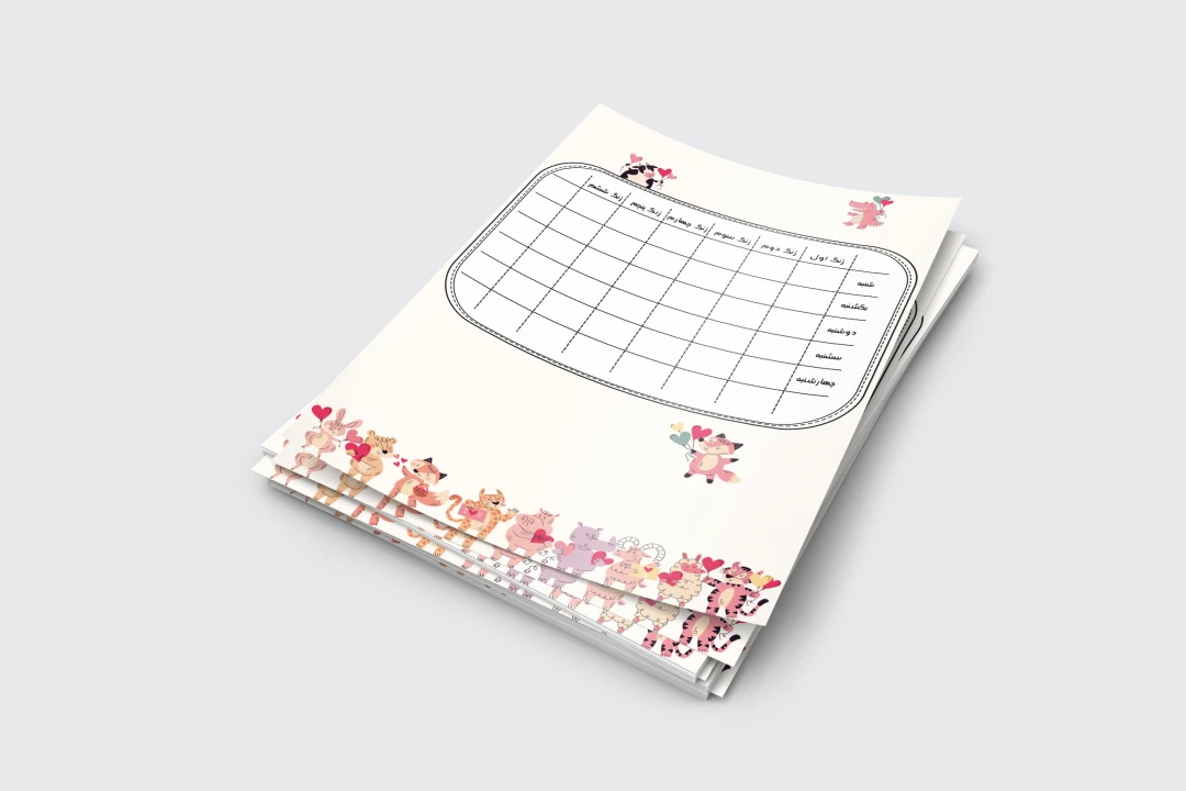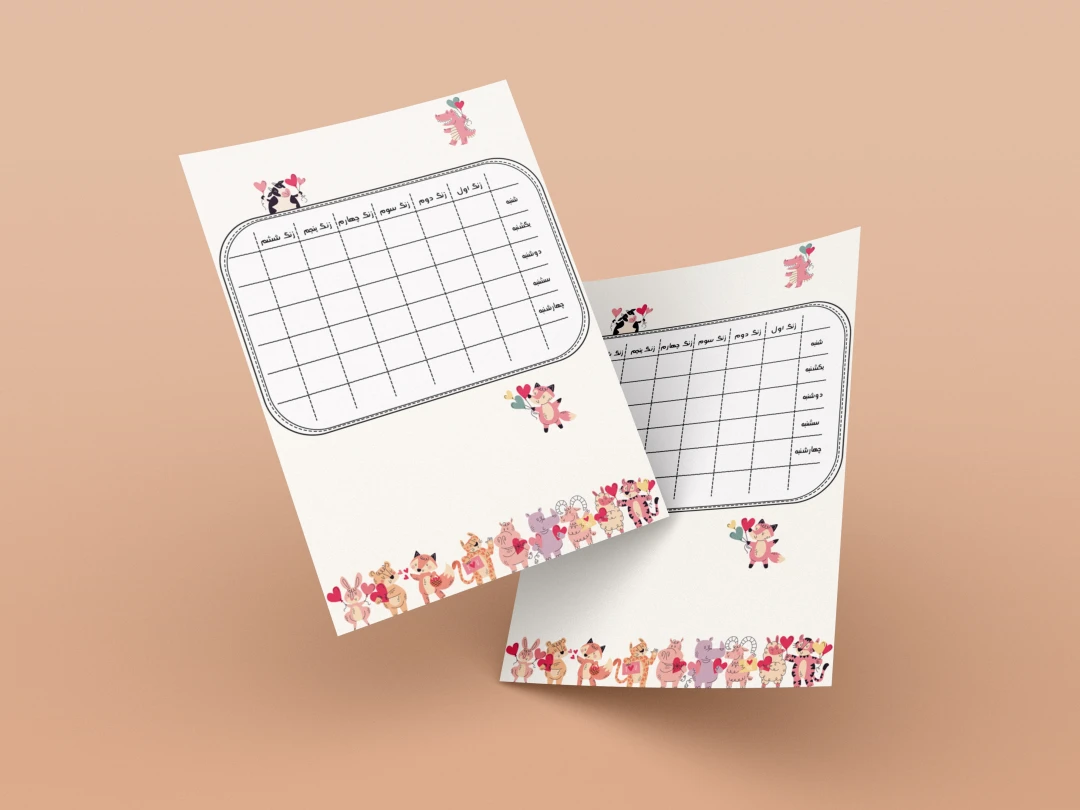 برنامه کلاسی هفتگی حیوانات کد 8754
