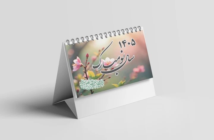 تقویم، سالنامه، سررسید رومیزی 1405 طرح لایه باز همراه با مناسبت ها و تعطیلات، با رنگ بندی متناسب چاپ در اندازه 22*14 با کیفیت بالا