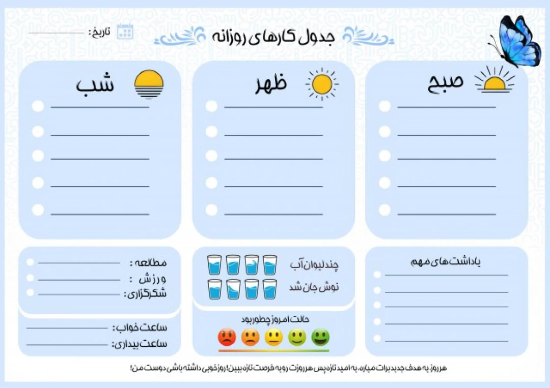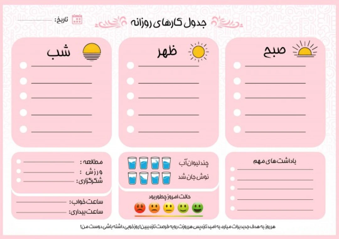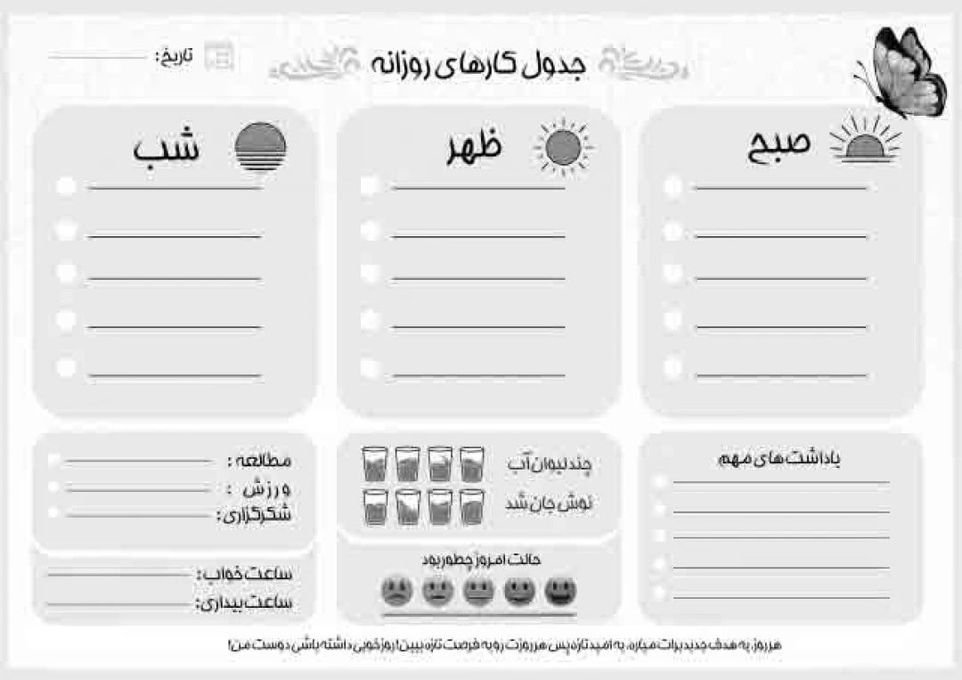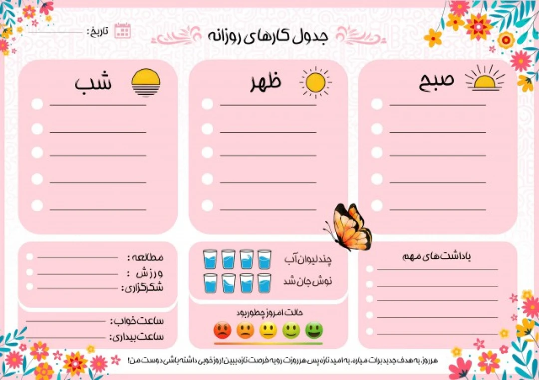 جدول برنامه ریزی روزانه لایه باز قابل ویرایش تمام بخش ها