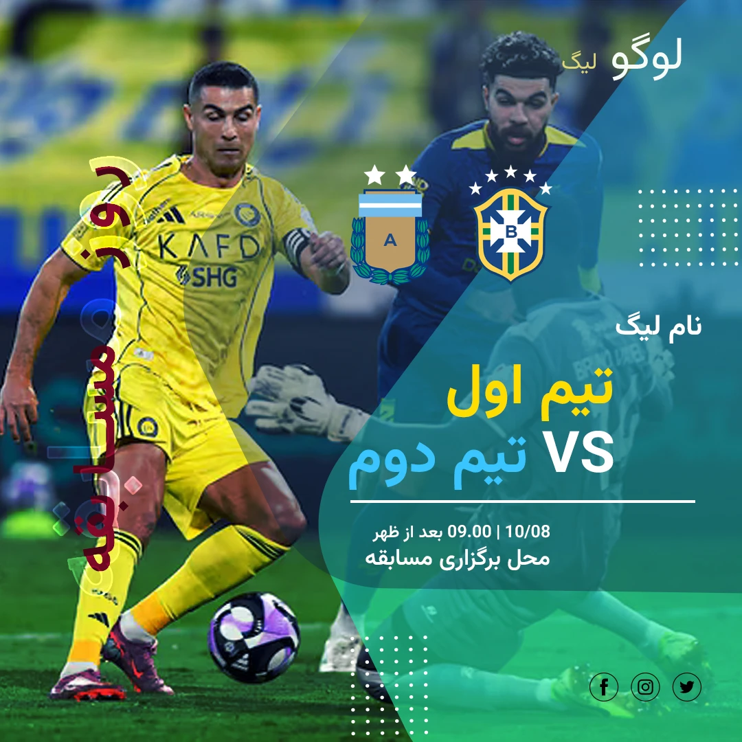 قالب پست اینستاگرام اعلام روز و پخش بازی فوتبال ویژه پیج های ورزشی