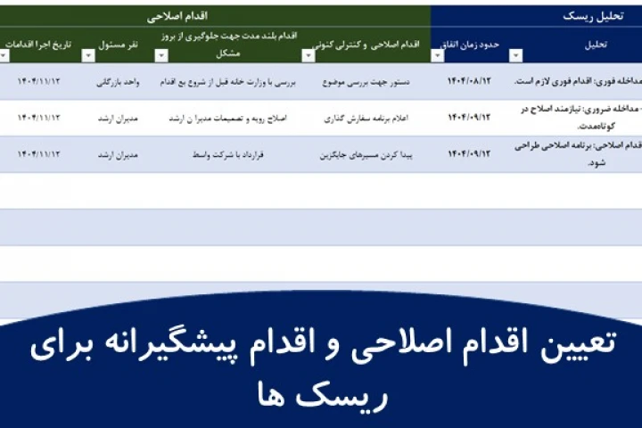 شما میتوانید با توجه به طرح ریسک و تحلیل ریسک انجام شده، اقدام اصلاحی و اقدام پیشگیرانه تعریف کنید.