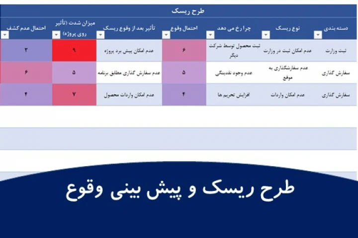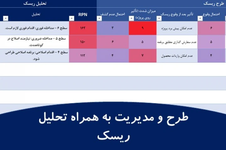 این فایل می تواند شما را در مدیریت ریسک های موجود پروژه و فعالیت ها یاری کند.