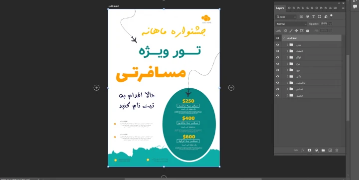 پوستر پریمیوم لایه باز تخفیف تورهای گردشگری و مسافرتی psd