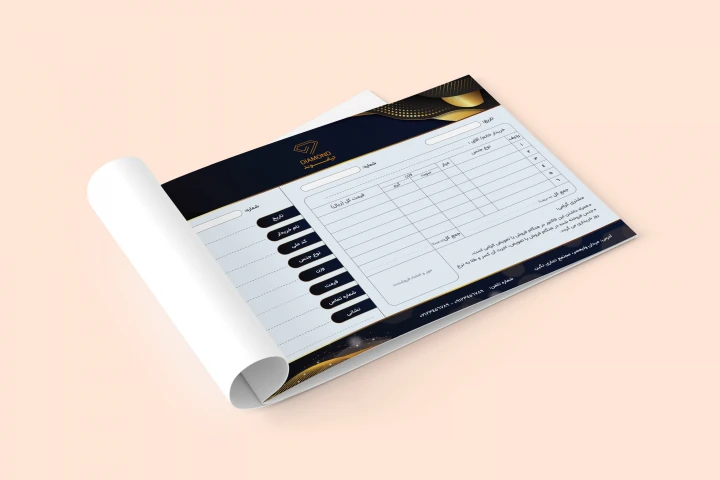 با این طرح لایه باز فاکتور طلا و جواهر فروشی، تجربهای حرفهای و منظم در ثبت فروش خود داشته باشید. طراحی شیک و لوکس این فاکتور با ترکیب رنگهای مشکی و طلایی، جلوهای خاص و رسمی به فاکتورهای فروشگاه شما میبخشد و نشاندهنده اصالت برند شما خواهد بود.