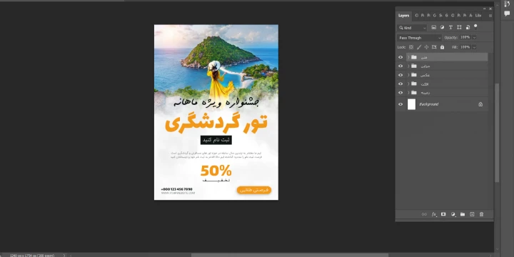 پوستر پریمیوم لایه باز تخفیف تورهای گردشگری و مسافرتی psd