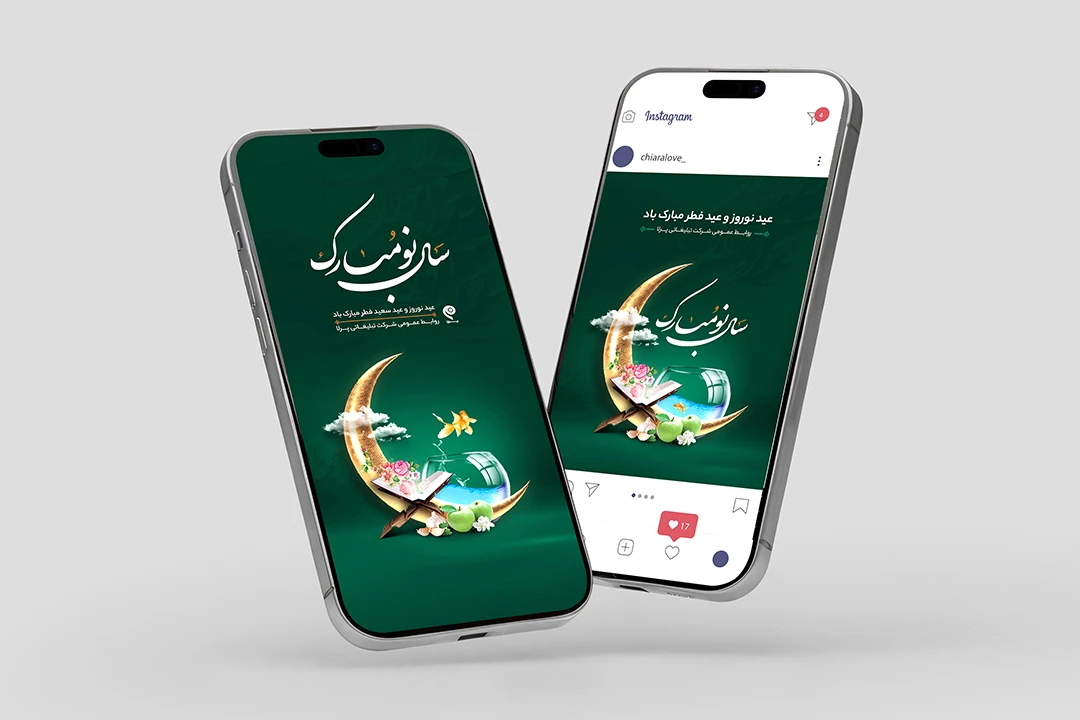 طرح پوستر تبریک نوروز و عید فطر بصورت لایه باز و کاملا قابل ویرایش در نرم افزار فتوشاپ، در دو سایز استوری و پست طراحی شده است. در فایل لایه باز پست ویژه عید نوروز اینستاگرام، 2 فایل برای استوری و پست ویژه تبریک نوروز 1405 و تبریک عید سعید فطر قرار دارد. اگر به دنبال طراحی شیک و جذاب برای تبریک نوروز 1405 هستید در خرید این فایل شک نکنید. آیتم های استفاده شده در طرح قالب پست و استوری تبریک عید نوروز باکیفیت، قابل ویرایش، جابهجایی، تغییر سایز و تغییر رنگ هستند.