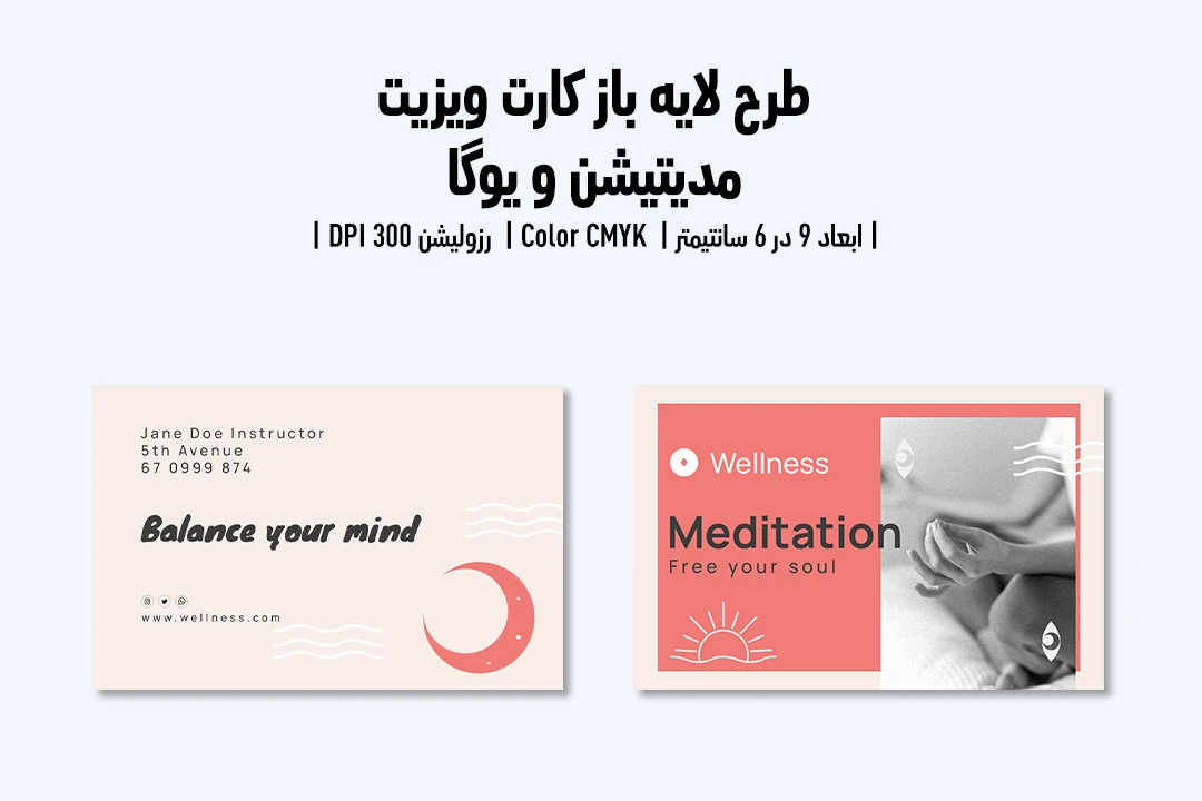 🧘♀️✨ کارت ویزیت لایهباز مدیتیشن و یوگا | طراحی مینیمال، آرامشبخش و کاملاً قابلویرایش PSD
