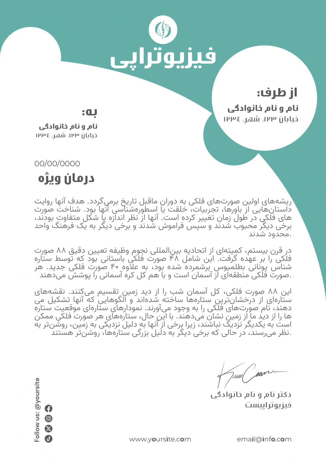 - ظاهر کاملاً رسمی و مناسب مکاتبات پزشکی