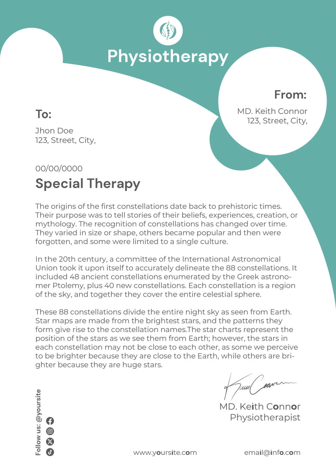 طراحی رسمی، کلینیکی و کاملاً قابلویرایش برای مراکز فیزیوتراپی، توانبخشی و کلینیک درد