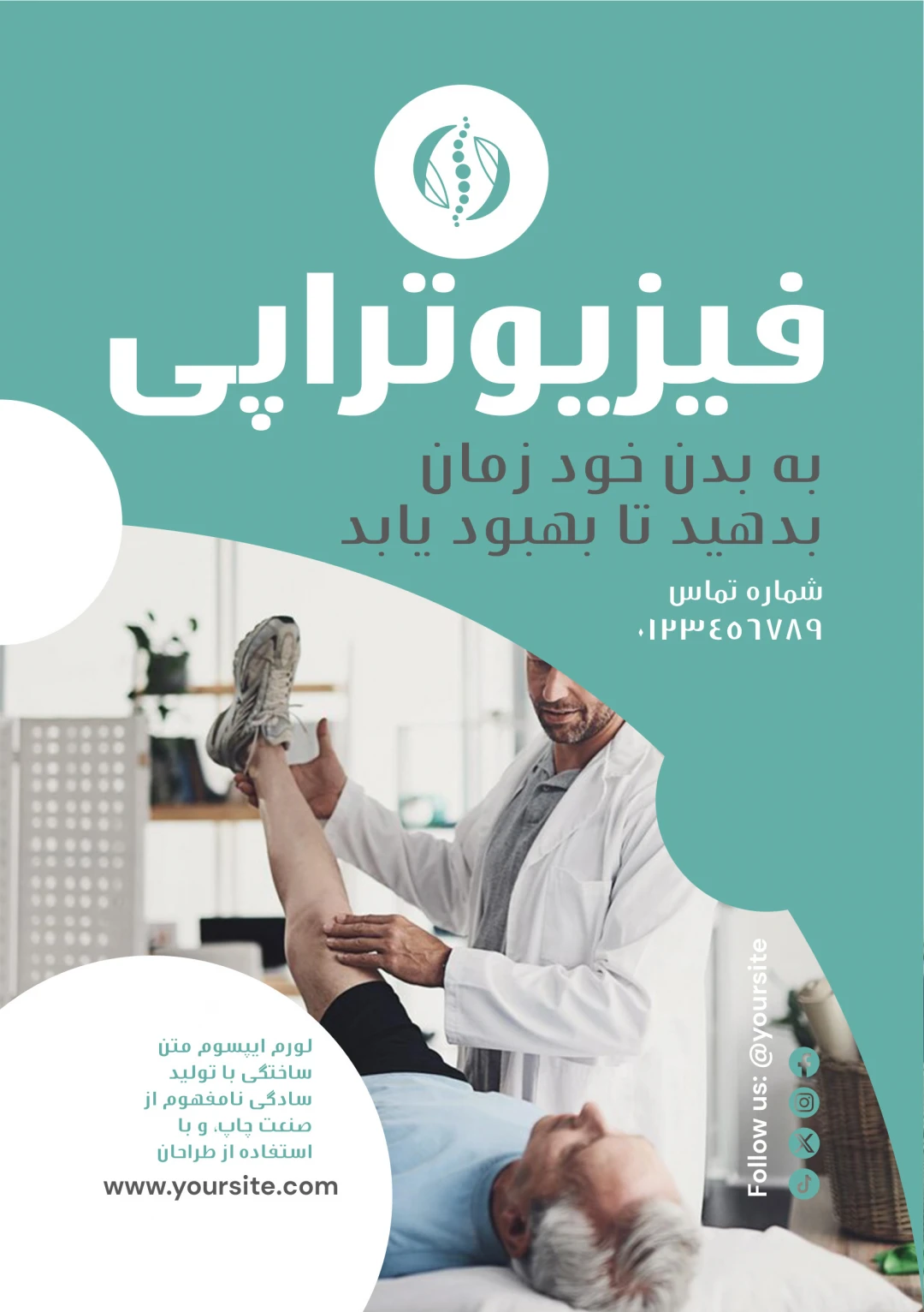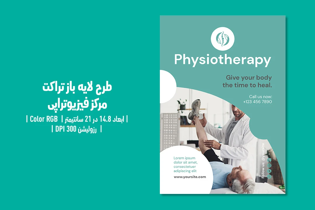 🩺✨ تراکت فیزیوتراپی دوزبانه (فارسی / انگلیسی) – فایل لایه‌باز حرفه‌ای | مناسب کلینیک فیزیوتراپی، توان‌بخشی ورزشی و درمان درد