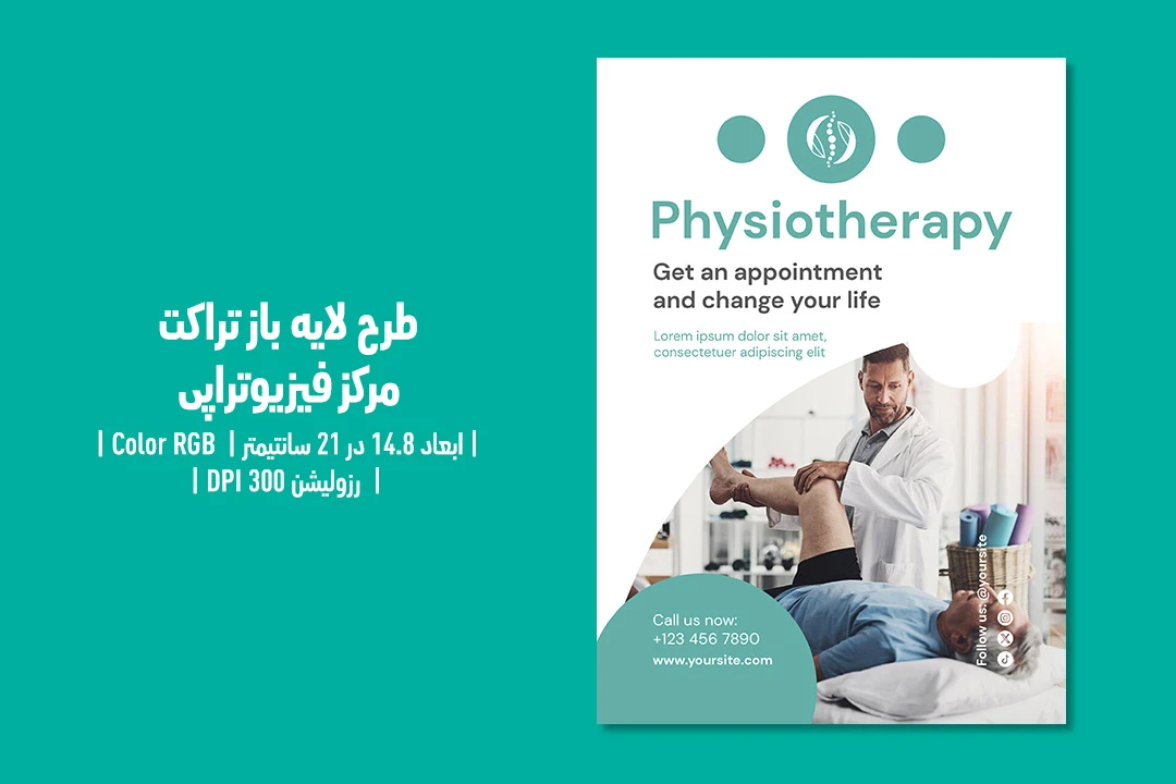 تراکت فیزیوتراپی دوزبانه (فارسی / انگلیسی) – فایل لایه‌باز حرفه‌ای | مناسب کلینیک فیزیوتراپی، توان‌بخشی ورزشی و درمان درد