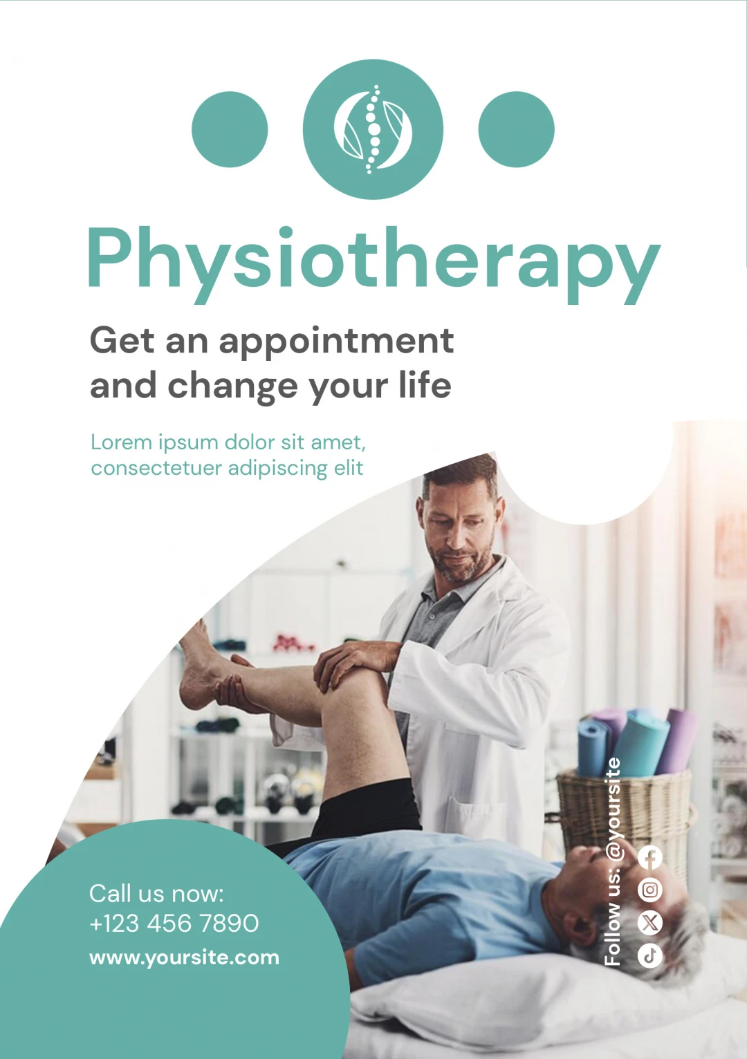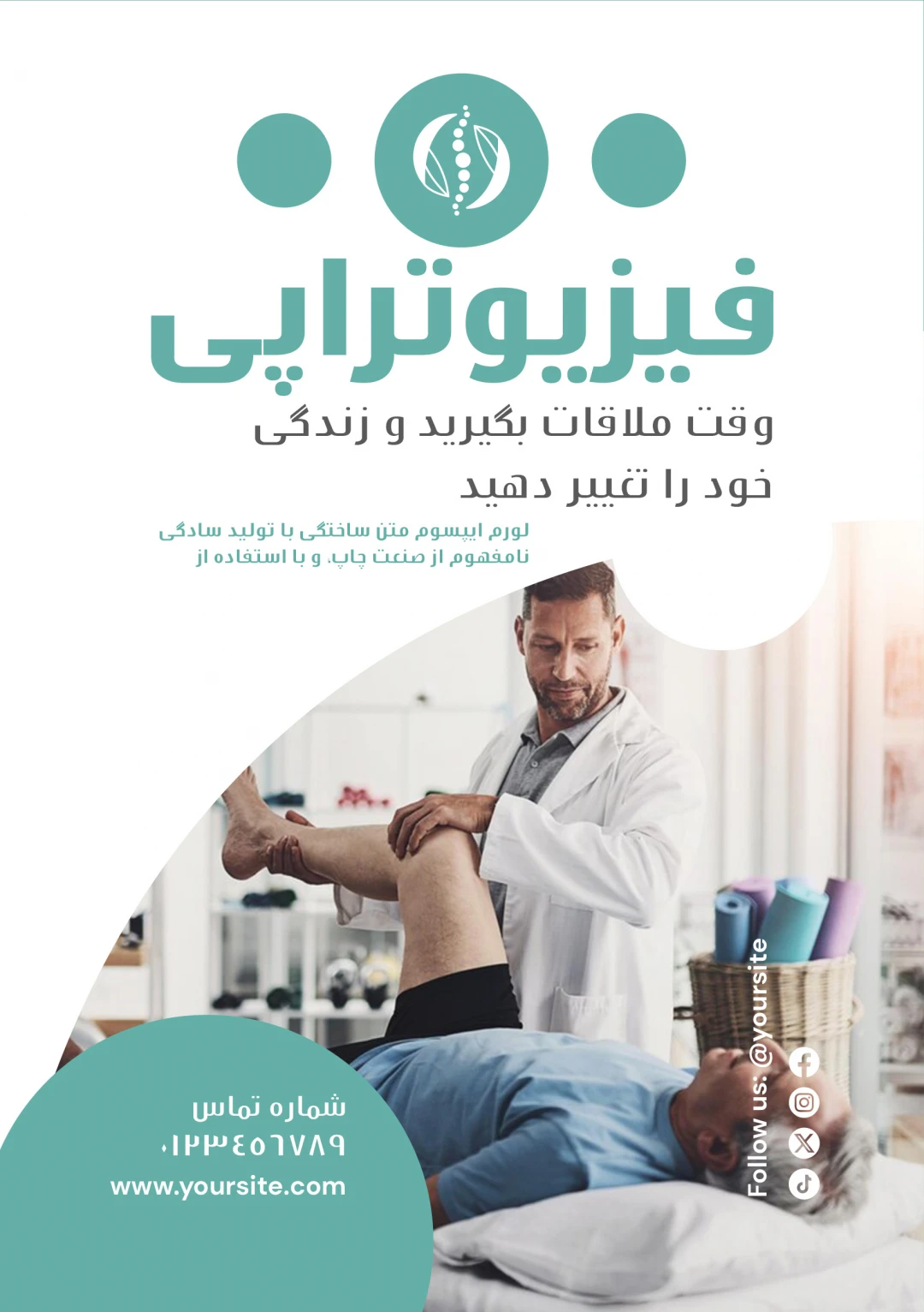 اگر برای کلینیک فیزیوتراپی، مرکز توان‌بخشی، مطب پزشک ارتوپد، مرکز درمان درد، یا تیم فیزیوتراپی ورزشی خود به یک تراکت جذاب، رسمی، فروش‌محور و کاملاً قابل ویرایش نیاز دارید، این طراحی دقیقاً برای شما ساخته شده است.