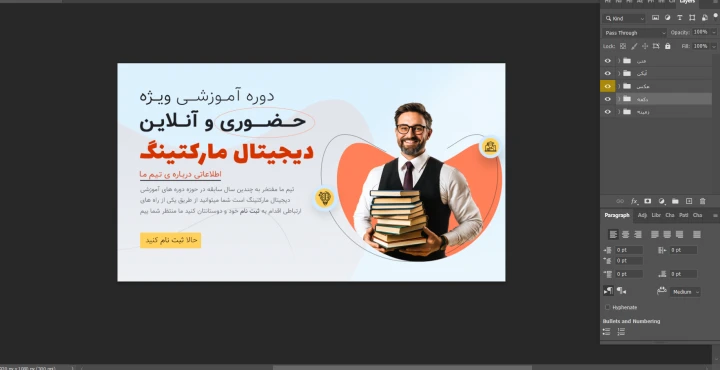 بنر پریمیوم سایت لایه باز دوره های آموزشی کمپین psd