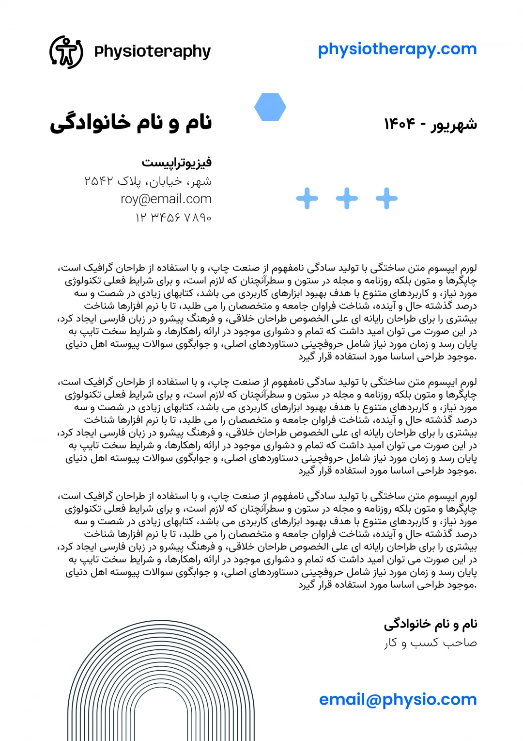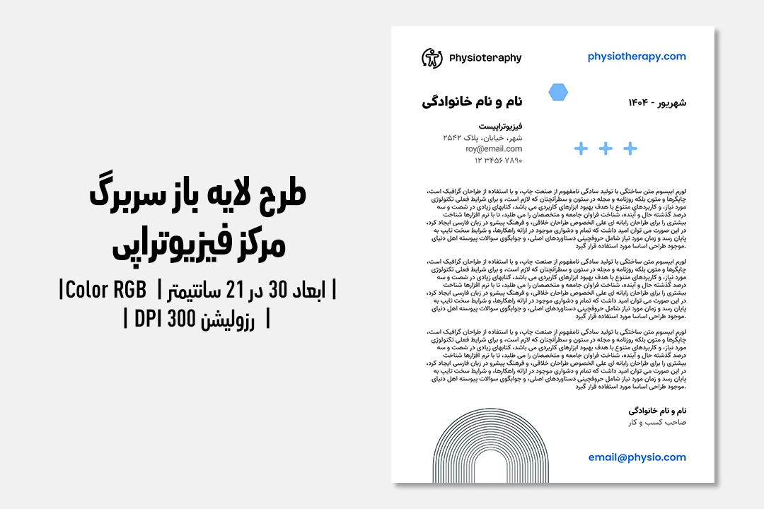 🩺📄 سربرگ فیزیوتراپی – نسخه دوزبانه (Farsi / English)