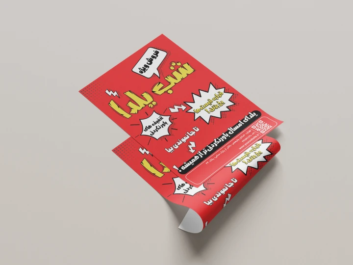 در این طرح از المانهای گرافیکی خاص مانند بالون گفتوگو، افکتهای تصویری کمیک، رنگبندی زنده و مدرن، تایپوگرافی درشت و چشمگیر استفاده شده تا پیام تبلیغاتی شما در همان چند ثانیه اول نگاه مشتری را جذب کند.