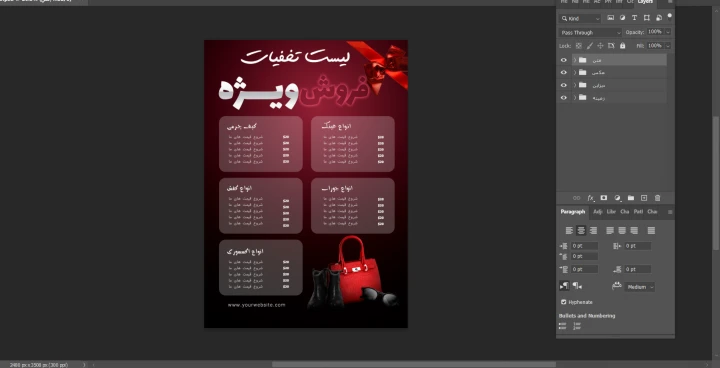 پوستر پریمیوم لایه باز لیست قیمت فروش ویژه محصولات psd