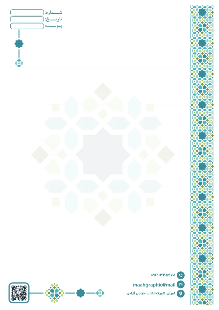 داشتن یک سربرگ اداری خاص و چشم‌نواز تأثیر بسیار زیادی بر برندینگ و هویت سازمانی شما دارد. این طرح با ترکیب المان‌های هنری سنتی و ساختار مدرن اداری، حس اعتماد و اعتبار بیشتری به مکاتبات شما می‌بخشد.
