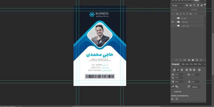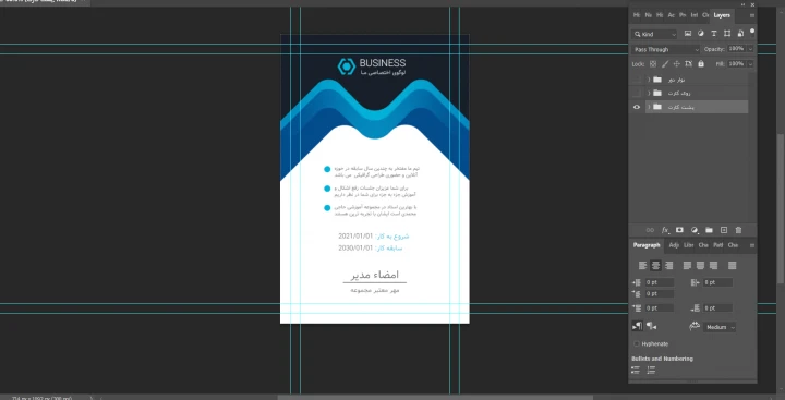 - برای رفتن به لایه های پشت و روی کارت طبق اسکرین گذاشته شده چشمک را روشن کنید