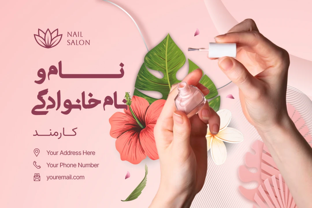 کارت ویزیت سالن زیبایی ناخن چیزی فراتر از یک تکه کارت است. این کارت، هویت بصری سالن را حمل میکند و اولین برداشت مشتری را میسازد.