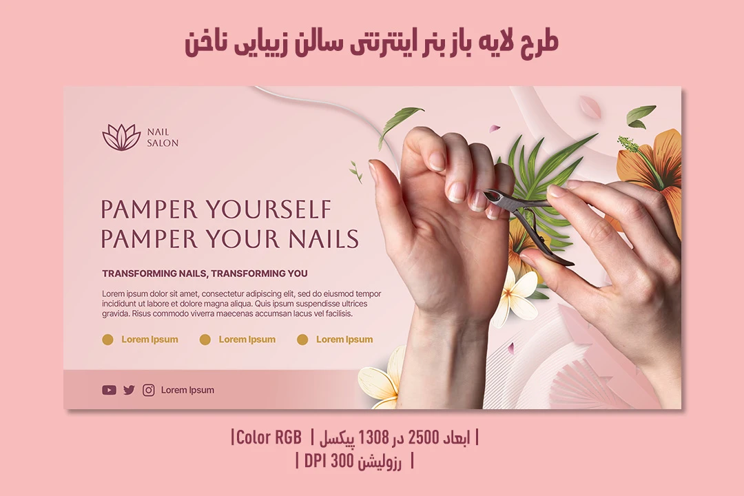 💅✨ بنر اینترنتی سالن زیبایی ناخن | طراحی لوکس، مدرن و کاملاً لایهباز