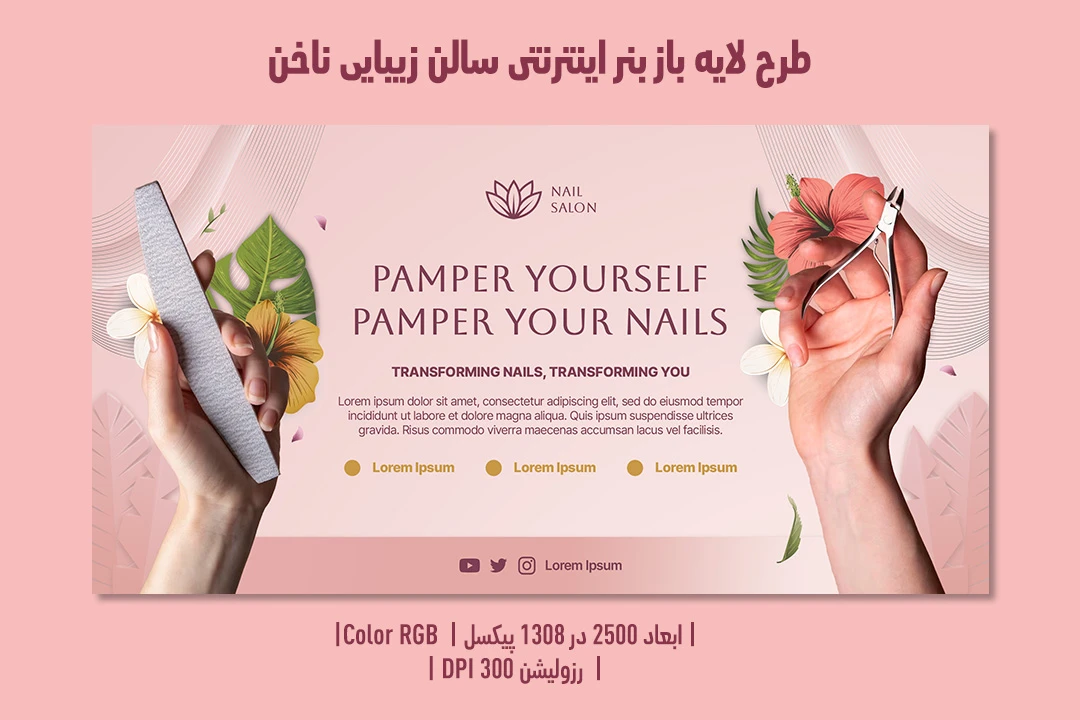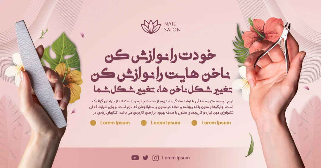 بنر اینترنتی سالن زیبایی ناخن | طراحی لوکس، مدرن و کاملاً لایه‌باز | دوزبانه فارسی و انگلیسی