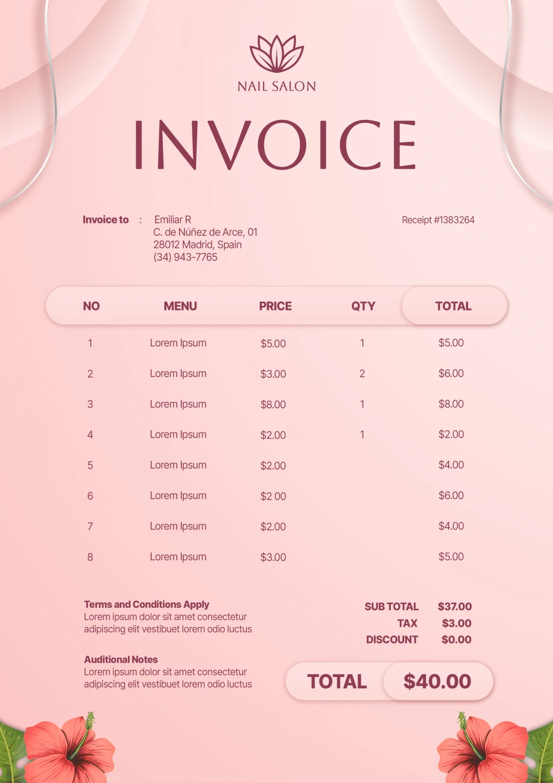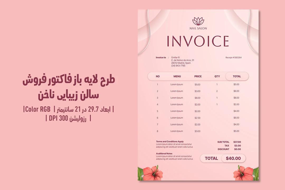 فاکتور فروش سالن زیبایی ناخن | طراحی شیک، کاربردی و قابل‌ویرایش + فایل PSD و JPG | فارسی و انگلیسی